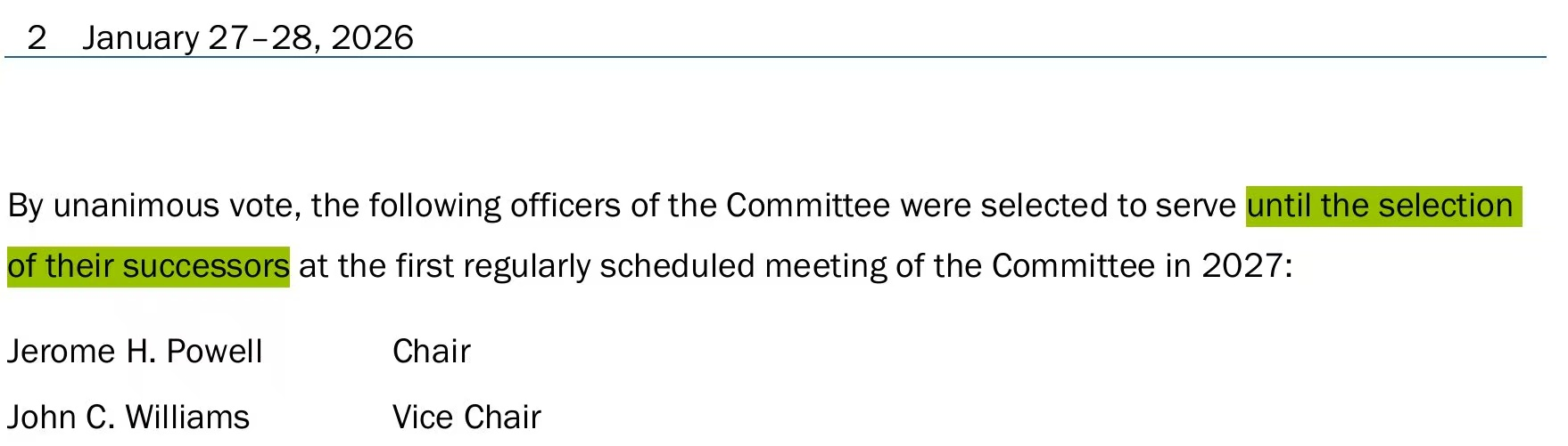 当地时间2月18日,美联储1月会议纪要显示,鲍威尔被选为2026年FOMC主席,该任命将持续至正式选出继任者为止。